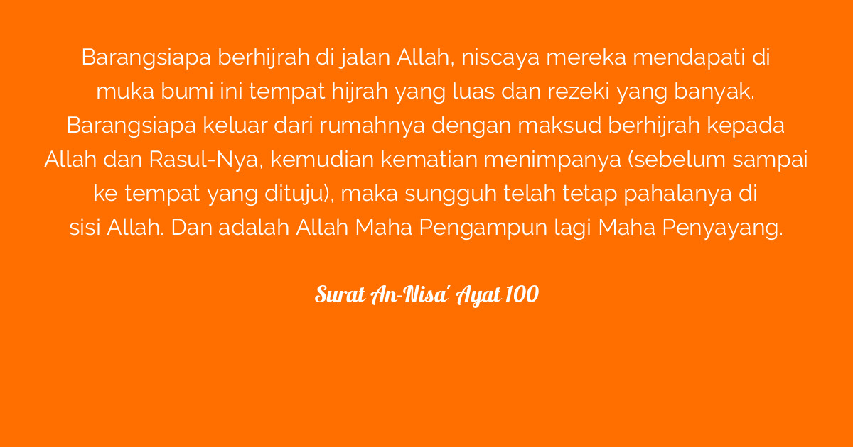 Surat Al Fatihah Untuk Diri Sendiri - Surat An-Nisa' Ayat 100 | Tafsirq.com - Dapatkan pahala berdakwah dan gratis buku rahasia rezeki berlimpah, klik di sini untuk detailnya.. Dalam ayat ini terdapat obat terhadap penyakit ketergantungan kepada selain allah ta'ala, demikian juga obat terhadap penyakit riya', 'ujub (bangga diri) dan sombong. Karena itu diwajibkan membaca surat ini setiap sholat. Dapatkan pahala berdakwah dan gratis buku rahasia rezeki berlimpah, klik di sini untuk detailnya. Dinamakan dengan al israa' yang berarti memperjalankan di malam hari, berhubung peristiwa israa' nabi muhammad s.a.w. Selain dijadikan sebagai surat pendek untuk …